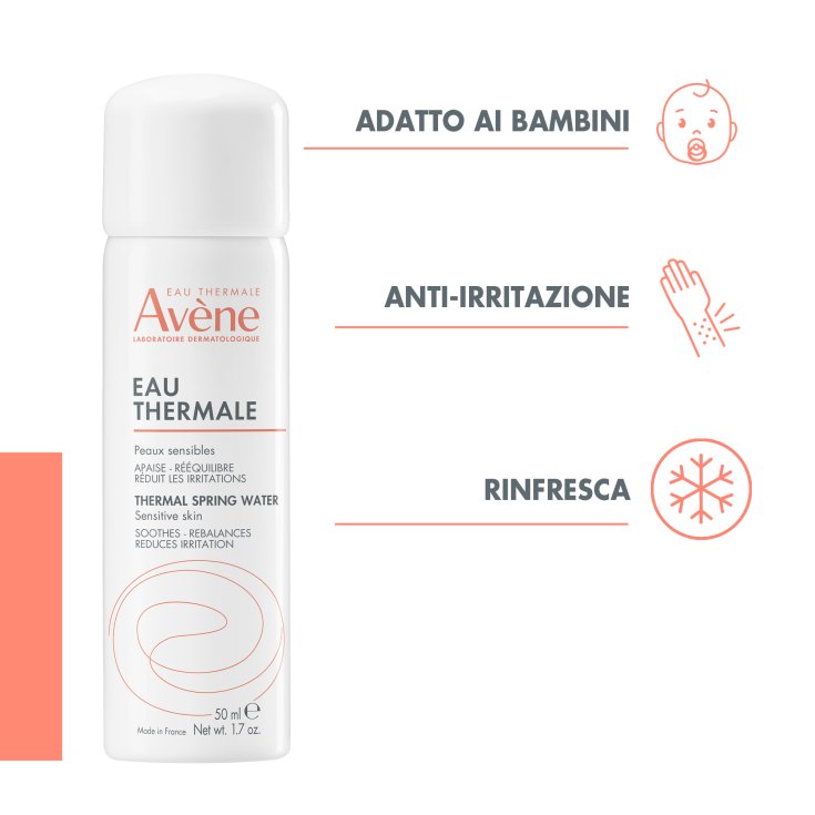 L’Acqua Termale Avène Spray lenisce, rinforza e riequilibra la pelle sensibile o la pelle che mostra segni di disagio, rossori, sensazione di “pelle che tira" o pizzicori.