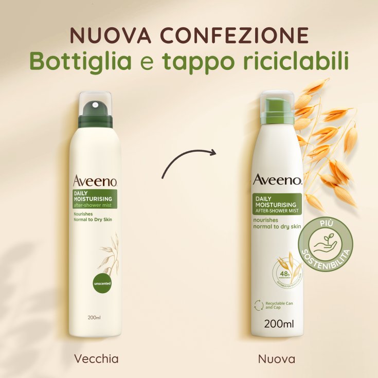 AVEENO Daily Moisturising Spray Dopo-Doccia con avena migliora il naturale equilibrio cutaneo per una pelle all’aspetto sano e più elastica sin dal primo utilizzo.