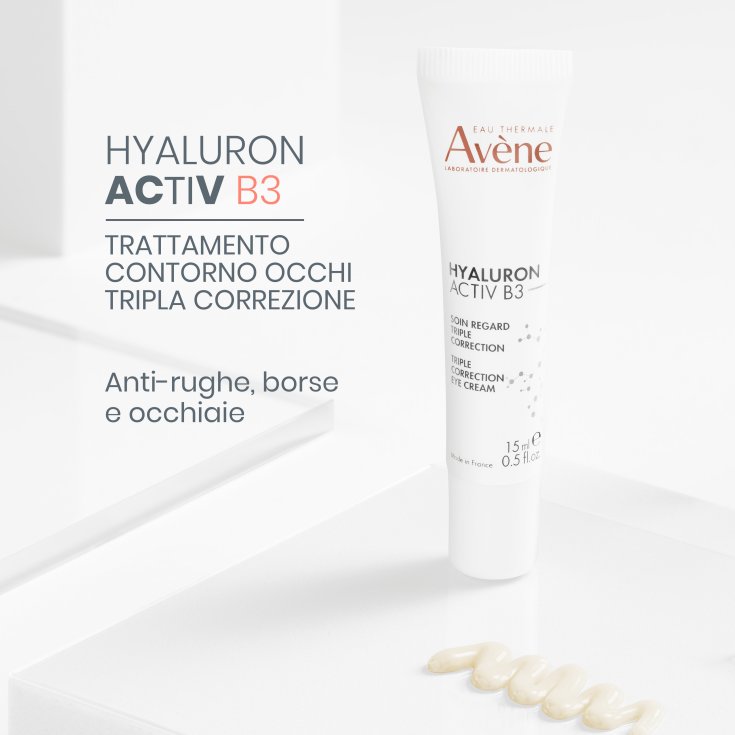 Eau Thermale Avène Hyaluron Activ B3 Trattamento occhi tripla correzione, borse e occhiaie è indicato per rughe e piccole rughe, contorno occhi affaticato, borse e occhiaie.