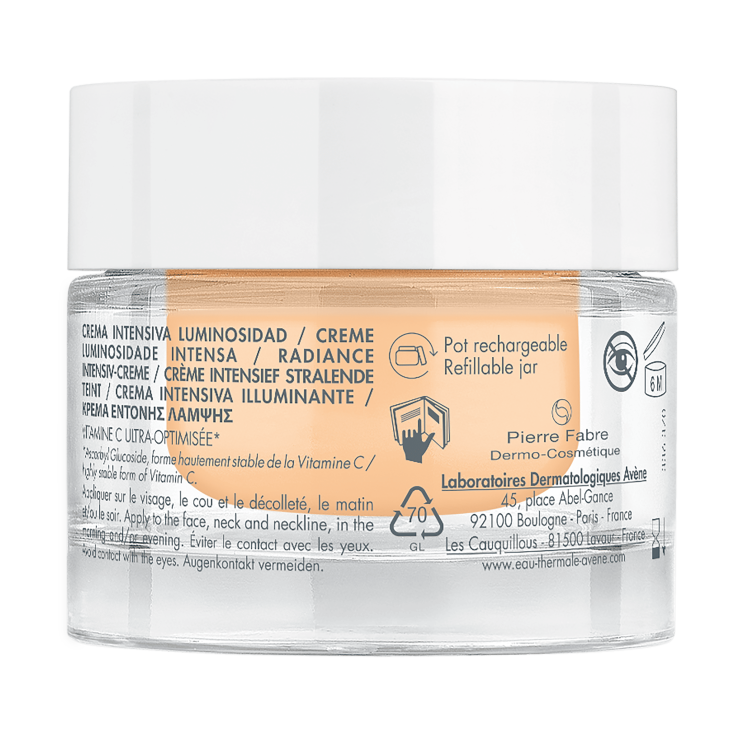 L'invecchiamento cellulare induce un declino progressivo delle funzioni dei tessuti. A livello cutaneo, la conseguenza è la comparsa di caratteristiche cliniche quali secchezza, macchie pigmentarie, rilassamento cutaneo, rughe... I Laboratoires Dermatologiques Avène hanno sviluppato la Crema Intensiva Illuminante, concentrata in 3 principi attivi dermatologici:
