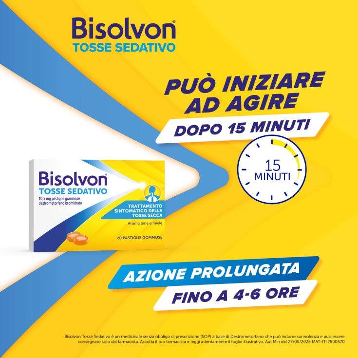 Il principio attivo di Bisolvon Tosse sedativo sciroppo è il destrometorfano bromidrato che aiuta a calmare la fastidiosa tosse secca riducendo la sensibilità del riflesso della tosse. Bisolvon Tosse sedativo agisce calmando lo stimolo a tossire in circa 15-30 minuti. Il destrometorfano bromidrato può indurre sonnolenza.