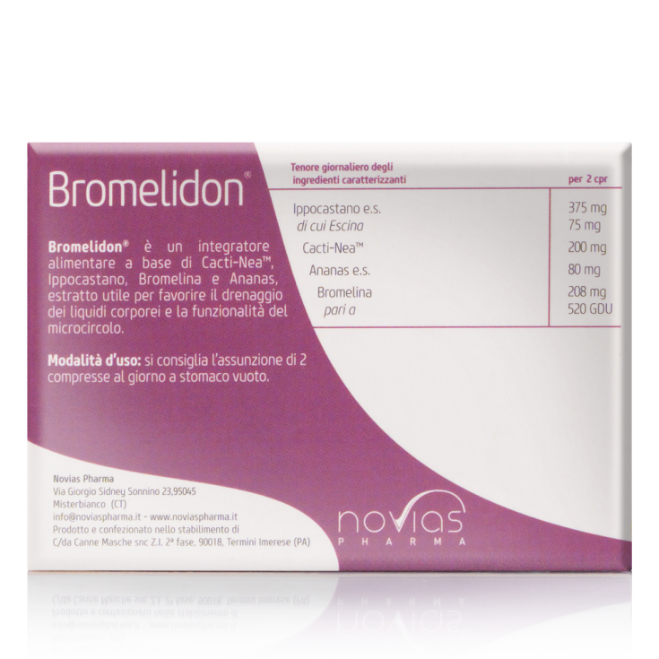 Bromelidon® è un integratore alimentare a base di Cacti-Nea™, Ippocastano, Bromelina e Ananas, estratto utile per favorire il drenaggio dei liquidi corporei e la funzionalità del micro-circolo.