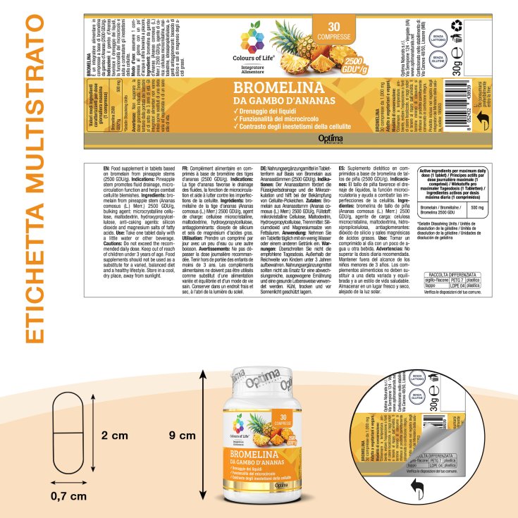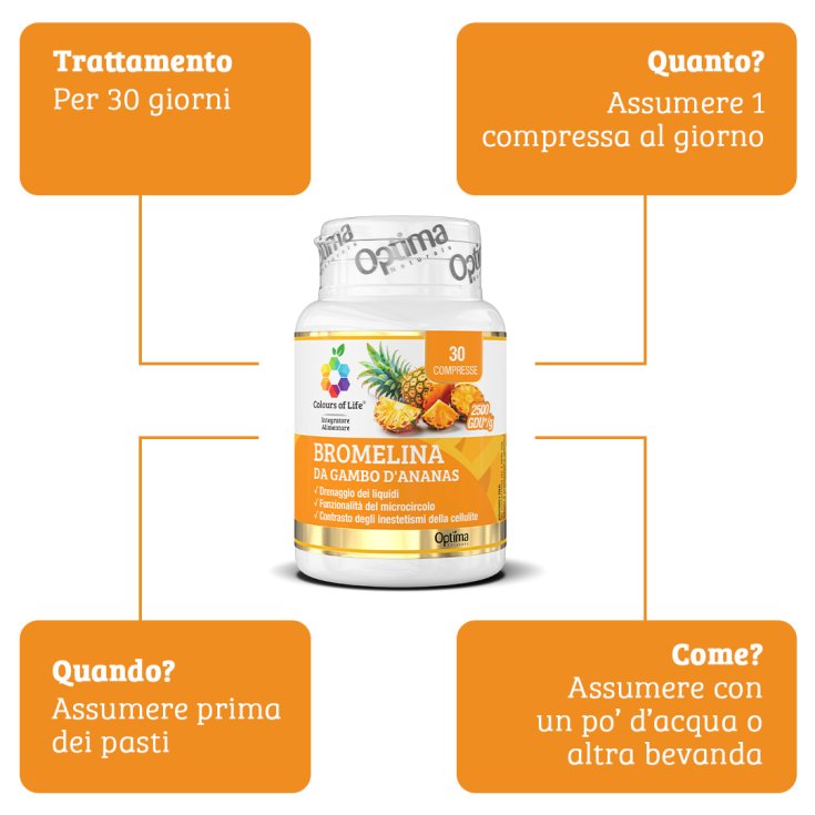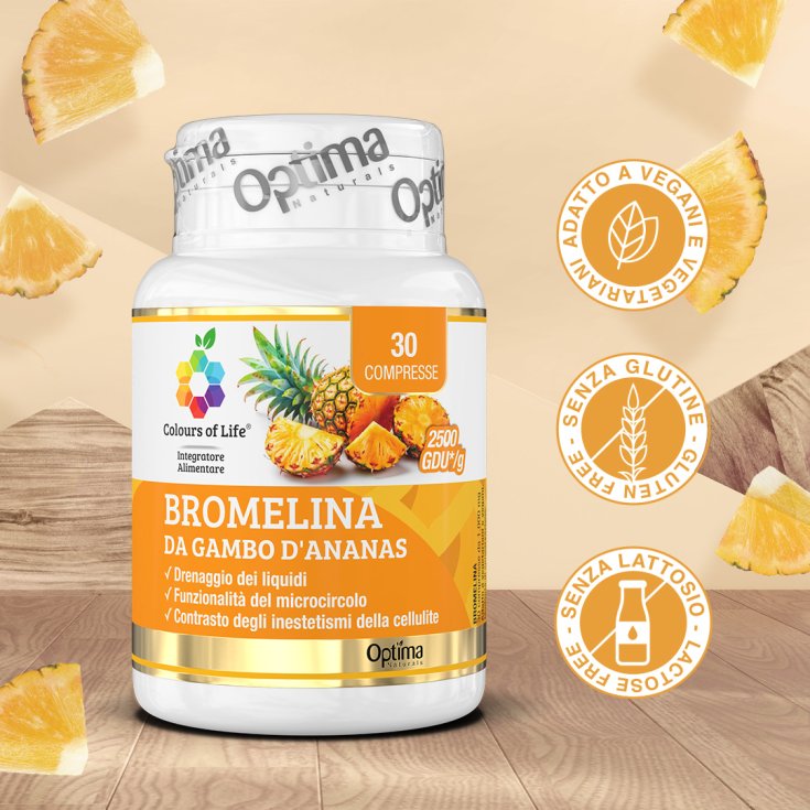 Integratore alimentare in compresse a base di bromelina da gambo d’ananas (2.500GDU/g).
