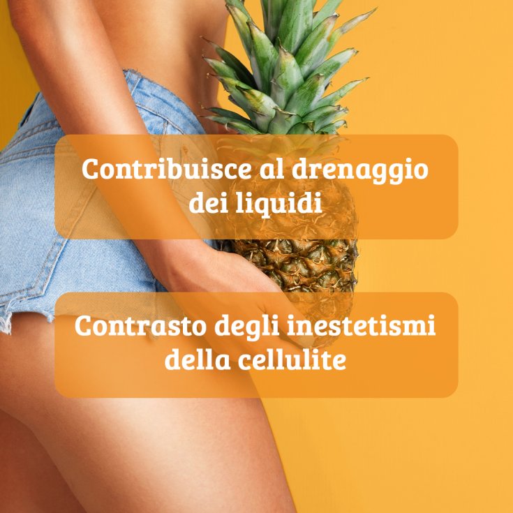 Il gambo d’ananas favorisce il drenaggio dei liquidi, la funzionalità delmicrocircolo e aiuta a contrastare gli inestetismi della cellulite.