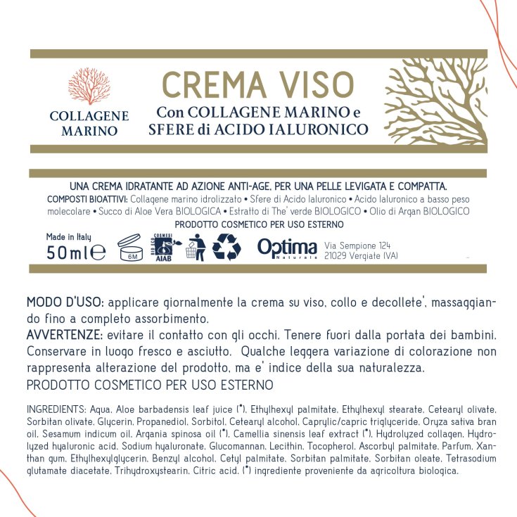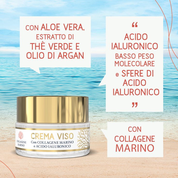 DescrizioneCrema viso formulata con collagene marino idrolizzato di tipo I, in grado di dare sostegno e protezione alla pelle, con sfere di acido ialuronico per un effetto rimpolpante. La formula è arricchita da olio di argan ed estratto di tè verde di origine biologica, dalle proprietà antiossidanti e anti-age.