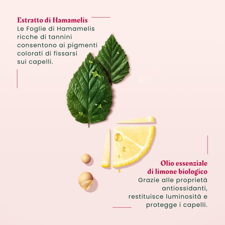 • PREVIENE LO SBIADIMENTO DEL COLORE FINO A 10 SETTIMANE¹: con estratto di Hamamelis BIO, ricco in tannini, fissante naturale del colore.