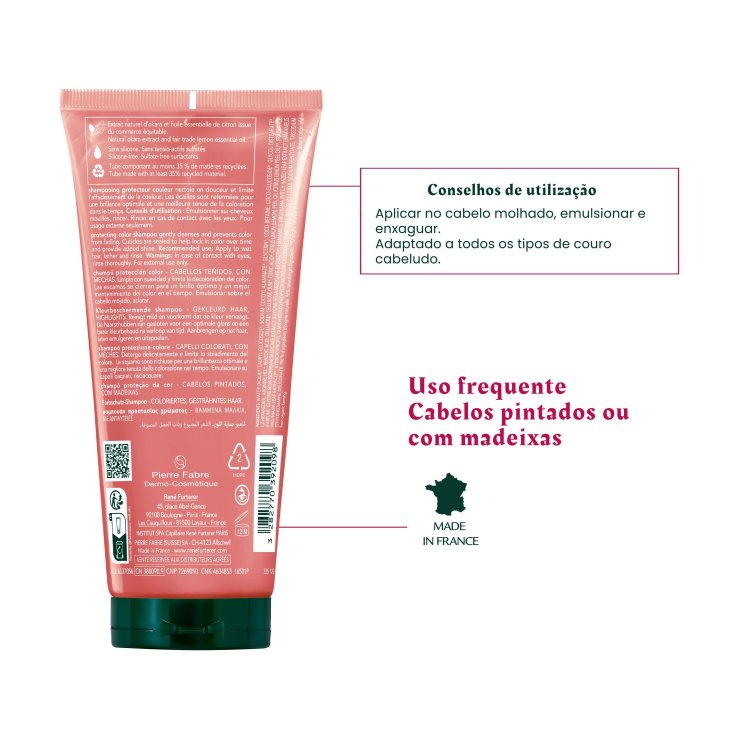 Questo shampoo professionale per capelli colorati o con méchés deterge delicatamente i capelli e preserva l'intensità del colore. La sua formula anti-sbiadimento è arricchita in principi attivi naturali specifici e associa i benefici degli amminoacidi di Okara BIO, simili a quelli della cheratina, dell'estratto di Hamamelis BIO, un potente fissante del colore di origine vegetale, e dell'olio essenziale di limone BIO, un antiossidante. Fissa il pigmento nel cuore della fibra e chiude le squame dei capelli per una brillantezza ottimale e una tenuta migliore della colorazione nel tempo. La sua texture ultra-sensoriale, dalla deliziosa fragranza floreale, si trasforma in un'emulsione cremosa. I capelli ritrovano morbidezza e luminosità, il colore è intenso e dura a lungo.