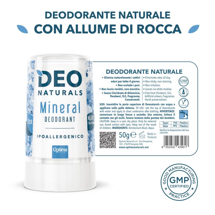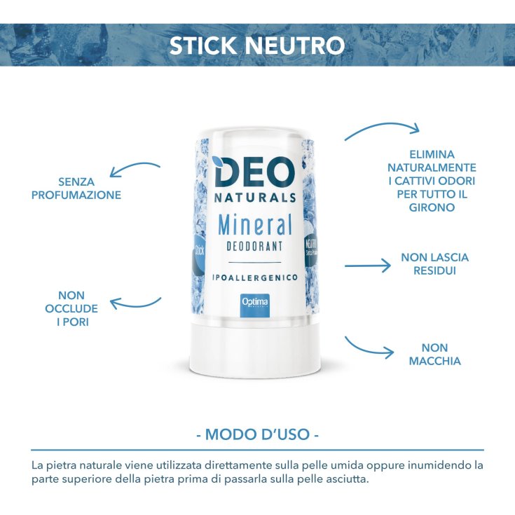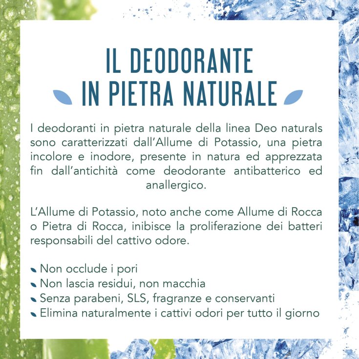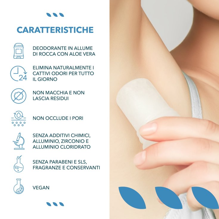 Deodorante stick ipoallergenico in Allume di Potassio, fornisce una protezione invisibile per tutto il giorno, lasciando traspirare la pelle.