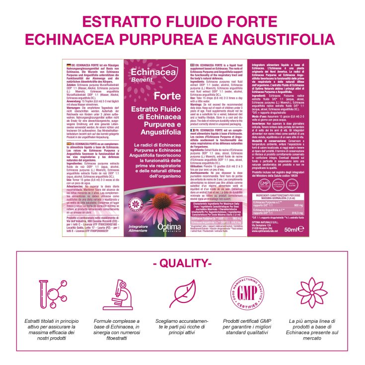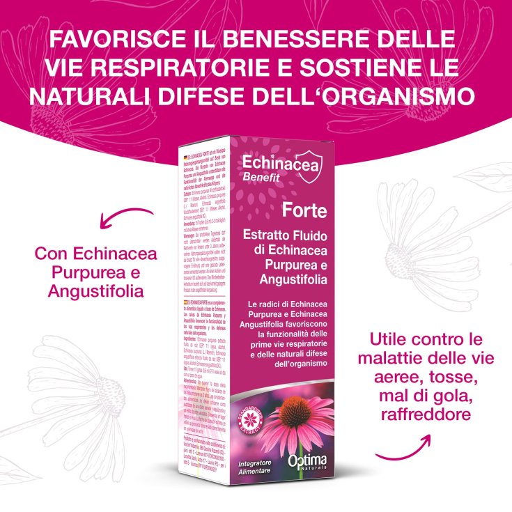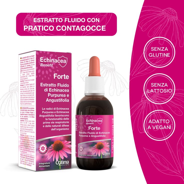 L’estratto fluido di Echinacea Optima Naturals abbina i principi funzionali di Echinacea Purpurea ed Angustifolia. L’estratto fluido così ottenuto massimizza le proprietà benefiche naturali dell’Echinacea, in particolare a livello delle vie respiratorie e per il sostegno delle naturali difese dell’organismo.