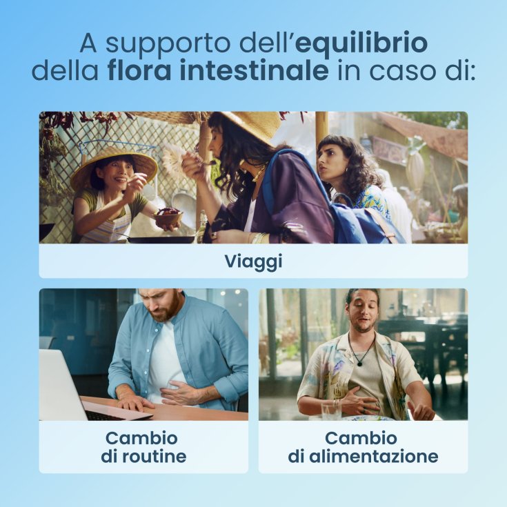 In queste situazioni l'alterazione della flora può comportare l'insorgenza di disturbi intestinali come ad esempio diarrea, stitichezza, gonfiore e dolori addominali che possono rovinare i preziosi giorni di vacanza.