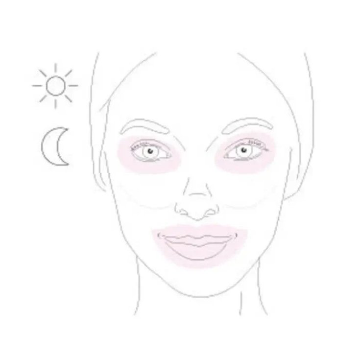 - Stendere con delicatezza su tutta la zona del contorno occhi e lungo il contorno delle labbra.