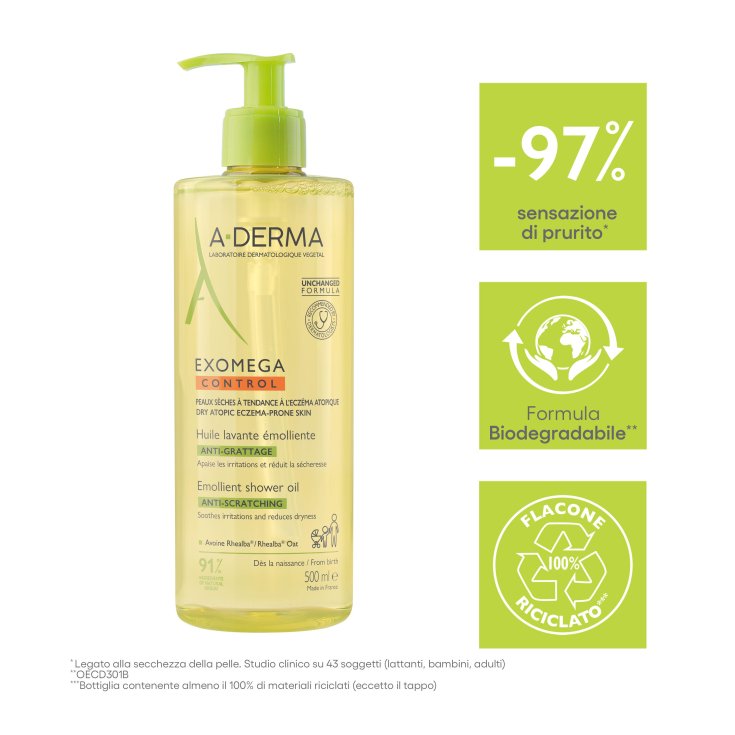 - DETERGE DELICATAMENTE la pelle secca e a tendenza atopica di lattanti, bambini e adulti. EXOMEGA CONTROL OLIO LAVANTE EMOLLIENTE protegge dalla secchezza e riduce la sensazione di pelle che tira.