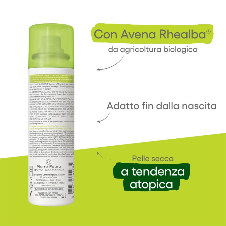 Con un gesto pratico e ultra rapido, lo Spray emolliente “anti-grattage” aiuta a lenire la sensazione di prurito* e a ridurre la frequenza dei picchi di irritazione della pelle secca a tendenza atopica, attenuando gli arrossamenti. La sua efficacia a 360° riduce la secchezza, rafforza la barriera cutanea e aiuta a riequilibrare il microbioma. Il suo sistema spray a 360°, senza gas (grazie alla tecnologia "pocket valve") e il rapido assorbimento consentono di lenire la pelle secca a tendenza atopica dandole sollievo ogni giorno con un gesto quotidiano mirato, efficace e confortevole. Uno spray nutritivo a base di Estratto di Plantule di Avena Rhealba® (giovani germogli di avena) dalla consistenza fluida. Una formula leggera contenente il 97% di ingredienti di origine naturale, senza profumo e adatta fin dalla nascita.