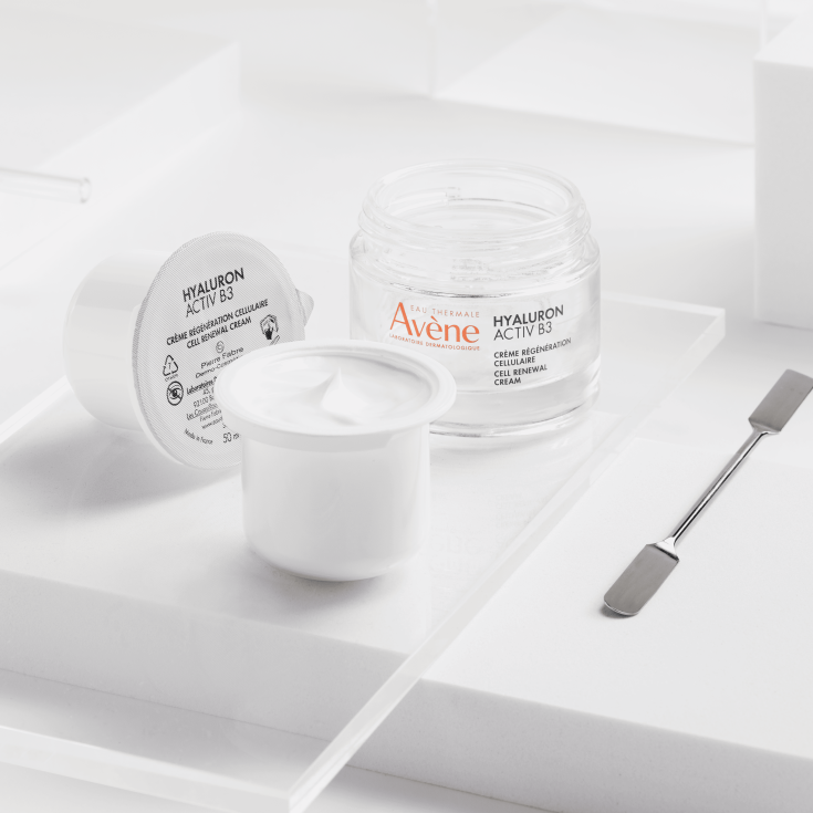 Con l'età, tutto accelera. Le cellule senescenti si propagano e le funzioni della pelle sono rallentate. I Laboratoires dermatologiques Avène hanno sviluppato la crema Hyaluron Activ B3, concentrata allo 0,2% in acido ialuronico puro (ad alto e basso peso molecolare) e in niacinamide (6%), per agire sulla causa dell'invecchiamento e prolungare la vita delle cellule*. La pelle è rimpolpata, levigata e luminosa fin dalla prima applicazione. A partire da 15 giorni, è rigenerata, più tonica e le rughe sono corrette**. La sua consistenza vellutata e delicatamente profumata dona comfort alla pelle. Ottima base per il trucco. Hyaluron Activ B3 crema rigenerante cellulare è un trattamento viso eco-concepito che contiene il 92% di ingredienti di origine naturale, senza ingredienti di origine animale, in un vaso di vetro ricaricabile.