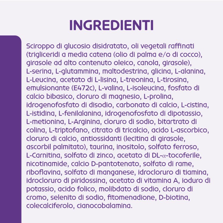 Indicato come unica fonte di nutrizione o come integrazione alla dieta del paziente. Da utilizzare sotto controllo medico.