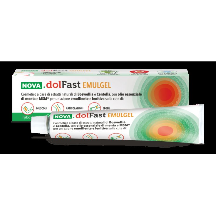 NOVA.dolFast Emulgel è un cosmetico per uso topico a base di estratti naturali di Boswellia e Centella, con olio essenziale di menta e Metilsulfonilmetano (MSM) per un'azione emolliente e lenitiva sulla cute di muscoli, articolazioni ed edemi.