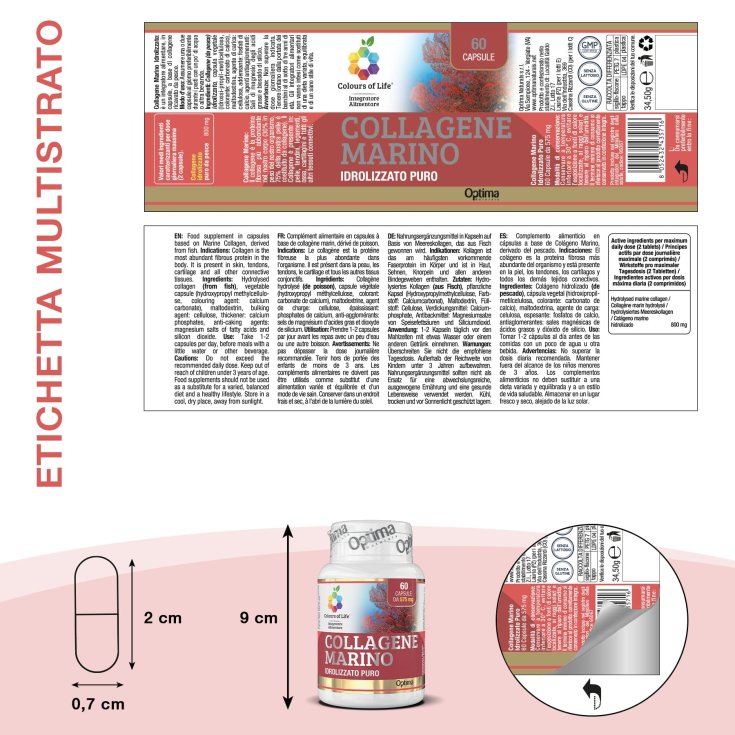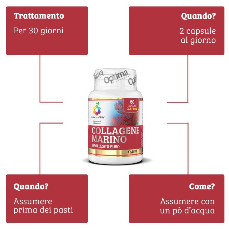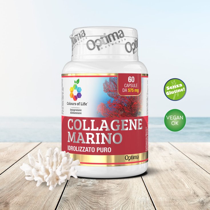 Collagene Marino Idrolizzato Puro è un prodotto a base di collagene marino puro idrolizzato: una proteina strutturale fibrosa che genera le fibre bianche (fibre collagenose) della pelle, dei tendini, delle ossa, della cartilagine e di tutti gli altri tessuti connettivi. Il collagene è la proteina naturale che compone la maggior parte del supporto strutturale del corpo ed è la sostanza principale dei tessuti connettivi. È il tessuto fibroso connettivo che assicura l'integrità strutturale del nostro corpo. Il collagene è presente in tutti gli organismi multi-cellulari.