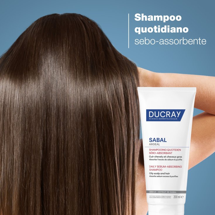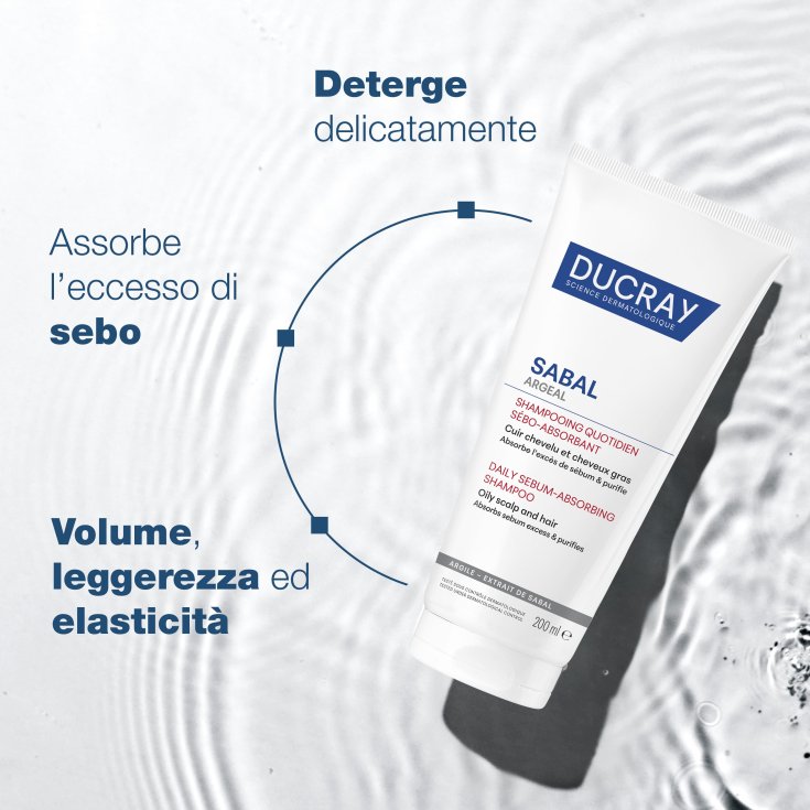 Ducray Sabal Argeal Shampoo sebo-assorbente, detergente uso quotidiano, Cuoio capelluto e capelli grassi, argilla delicata.