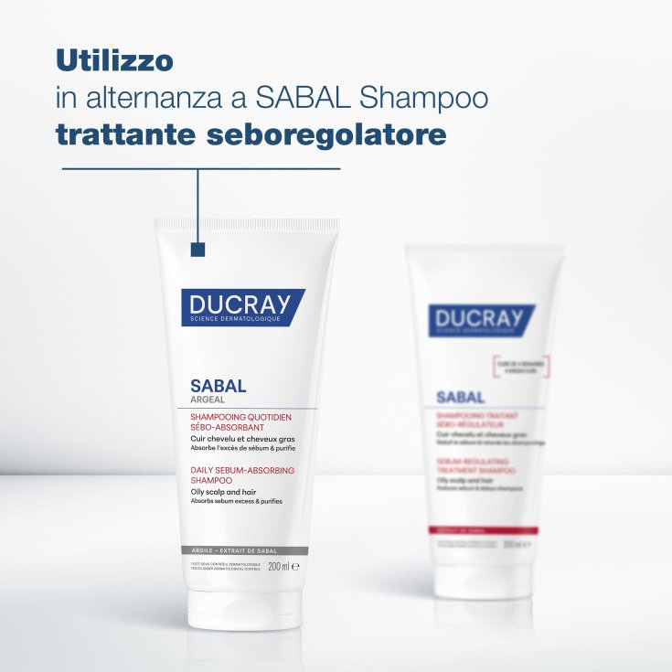 Ducray Sabal Shampoo trattante sebo-riduttore, Trattamento purificante anti sebo in eccesso, Cuoio capelluto e capelli grassi.