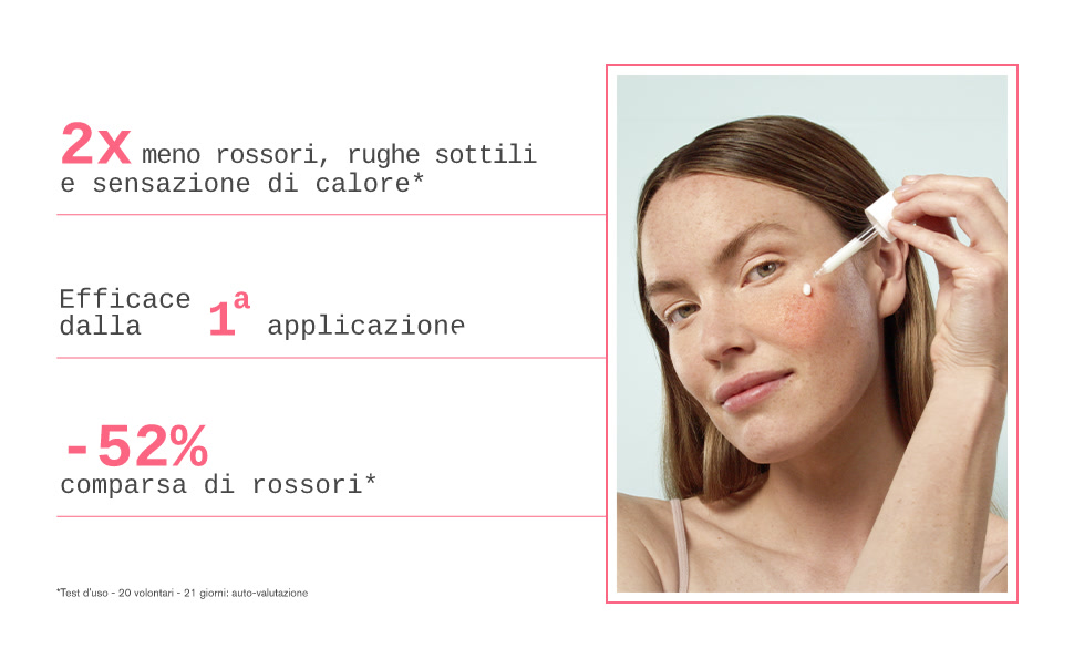 Riduce visibilmente i rossori della rosacea e del surriscaldamento fin dalla prima applicazione. La sua formula, ricca di esperidina, enoxolone e niacinamide, lenisce, leviga e idrata a lungo la pelle sensibile.