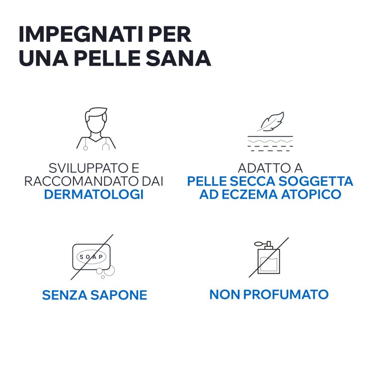 Detergente liquido delicato e lenitivo, formulato per l’igiene quotidiana della cute molto secca o a tendenza atopica. Previene la disidratazione. La sua schiuma cremosa deterge delicatamente la pelle.