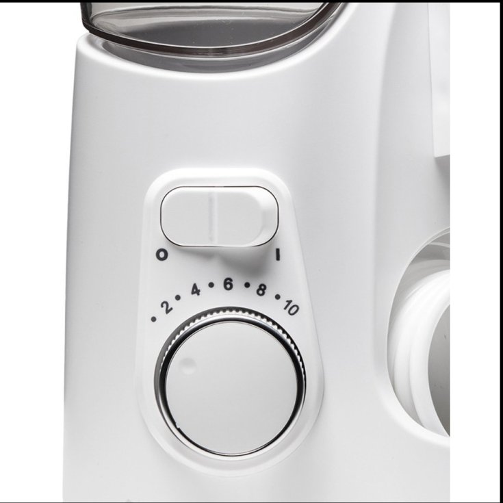 - Controllo della Pressione a 10 Livelli: Da 10 a 100 psi, permette di personalizzare la potenza del getto, adattandosi sia a gengive sensibili che a necessità di pulizia profonda.