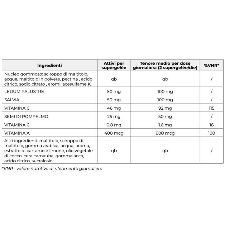 Si consiglia l’assunzione di 2 supergelee al giorno, da assumere nell’arco della giornata. Degustare le supergelée in bocca per almeno 1 minuto prima di deglutire.